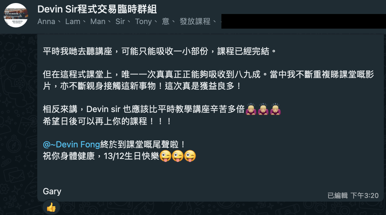 程式交易課堂後學員反饋